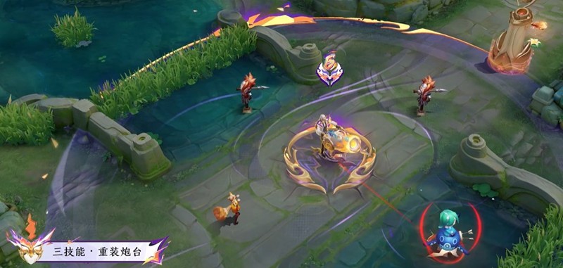 这款皮肤的特效设计非常精致,具有现代军工风格。火炮武器变为机械炮台,普攻发射导弹并留下火焰轨迹,大招架炮时展开全息瞄准镜,特效精度接近传说品质。