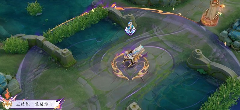 炮台架起,脸谱状的炮台底座显现,庞大的法阵光辉流转,火焰燃烧不息。头顶脸谱状的计数器标记着炮弹的剩余数量,火焰炮弹携万钧之力砸向敌人。