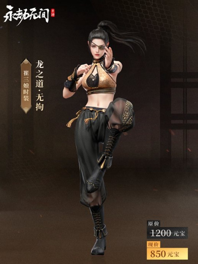 5、新增崔三娘极品时装【龙之道·无拘】,原价1200元宝,折扣价850元宝