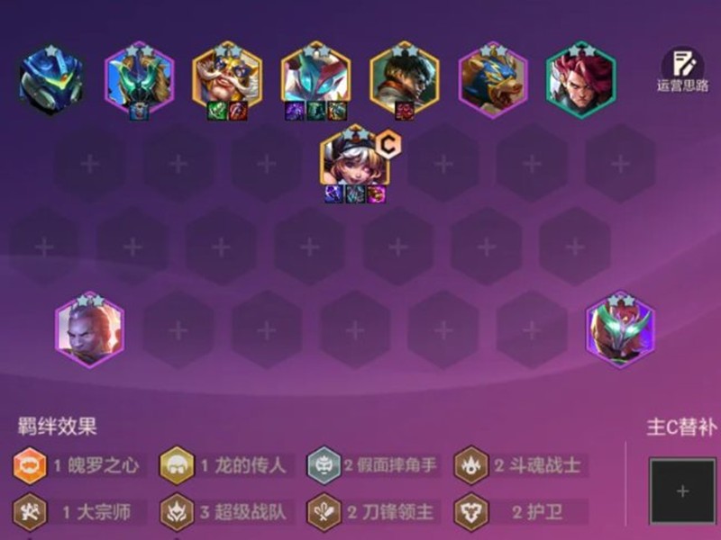 这是开服最强的九五阵容之一,格温拥有强大的AOE输出能力,永恩则具备出色的群控和收割能力,即便经过削弱依然强势。前期正常拉等级,可选择护卫+强势输出位走连胜过渡,或者用水晶玫瑰走连败收菜。2-1拉四,2-5拉五,3-2拉六,3-5拉七,4-2拉八,上九时至少留30金币,快速D出体系内弈子,并按布局站位(永恩、格温站中间),阵容成型后拉十补婕拉。