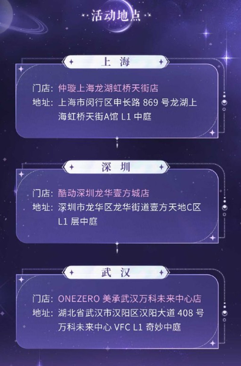 活动期间,上海、深圳、武汉的指定Apple授权专营店所在商场中庭广场将举办《闪耀暖暖》六周年特别展陈,展区内将展出【千徊星海·巨型头纱】、【超大型星之海暖fufu】和【与暖同行合影长廊】,欢迎搭配师们前往打卡。
