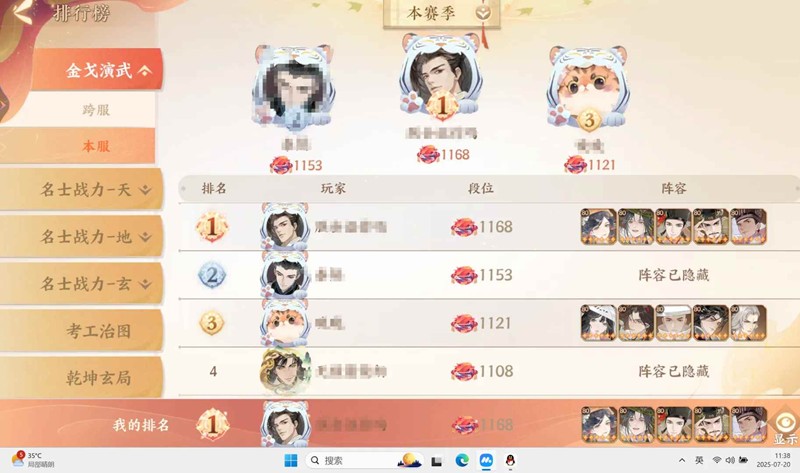 3.戚朱+徐奢+婆婆(高速马迁)(朱棣这比卡是真超标,不想说什么,半年时间还在t1,尼玛我单体一哥刘秀只登顶了两个多月时间)
