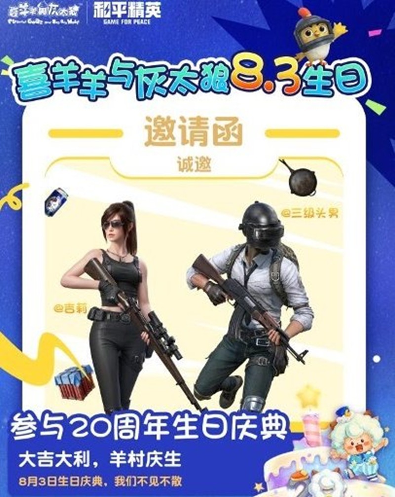 二十年情怀破次元!《和平精英》×《喜羊羊与灰太狼》联动承包盛夏狂欢开启!和平精英全新联动-喜羊羊与灰太狼系列正式上线!