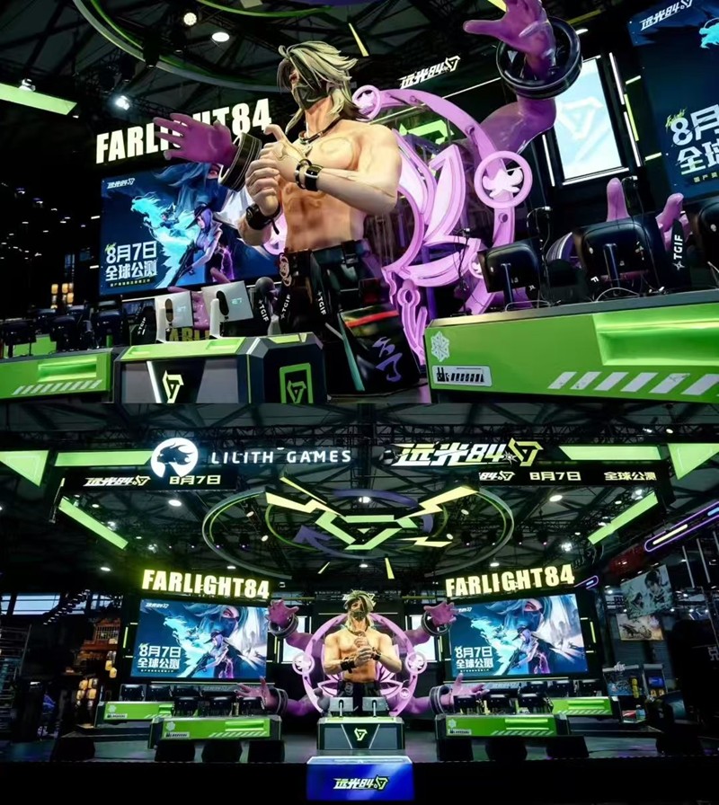 展台设计现代而富有科技感,展示了《远光84》的游戏特色和最新内容。玩家可以在现场体验游戏,感受国产英雄射击旗舰之作的魅力。