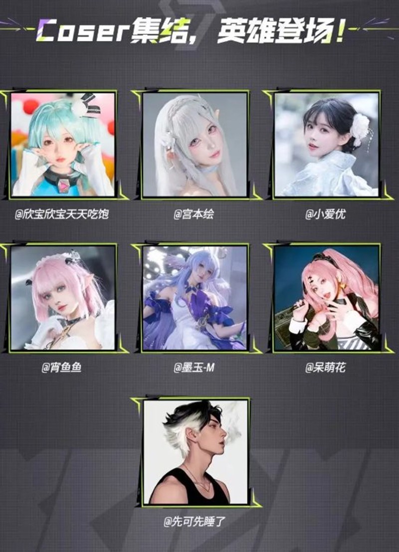 ChinaJoy期间,多位知名Coser将集结现场,包括 欣宝欣宝天天吃饱、 宫本绘、 小爱优、 肖鱼鱼、 墨玉-M和 呆萌花等,他们将扮演《远光84》中的英雄角色,为玩家带来视觉盛宴。