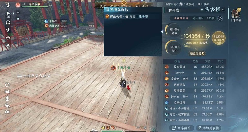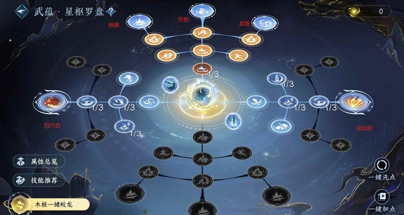 武韵加点,测下来是扫六合+凌云跃一键伤害最高。凌云跃+刺贯秒伤最低,9.9w