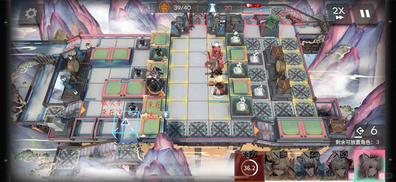 【长驱不复】:中路3只大刺猬猪赶紧用EW进行清理,否则会持续对后面半圈的干员造成伤害。中路除蓝门门口外其他地方不可放置地面干员,所以小心漏怪