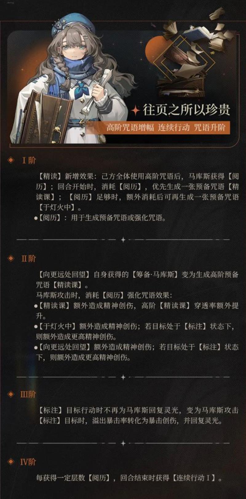 I阶:新增【精读】效果,马库斯获得【阅历】,用于生成预备咒语或强化咒语。