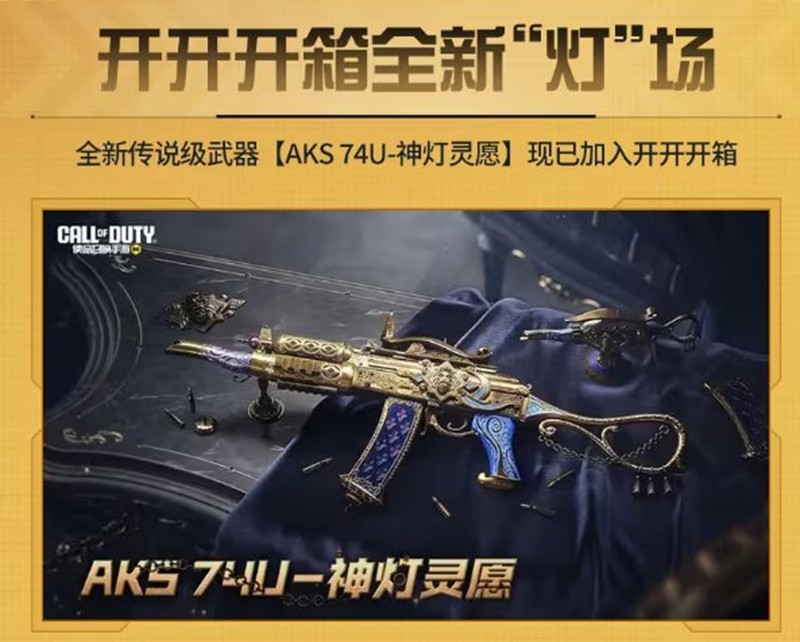 除了免费试玩活动,使命召唤手游还推出了全新的开箱活动。玩家们可以通过开箱获得各种奖励,包括全新的传说级武器【AKS 74U-神灯灵愿】。此外,还有机会获得其他多种武器和装备,让玩家们的武器库更加丰富。