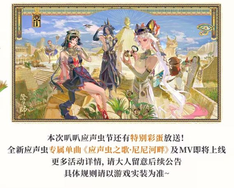 本次“应声虫节”还有特别彩蛋放送!全新应声虫专属单曲《应声虫之歌·尼尼河畔》及MV即将上线。更多活动详情,切游网会密切关注,为您带来最新内容。敬请期待。