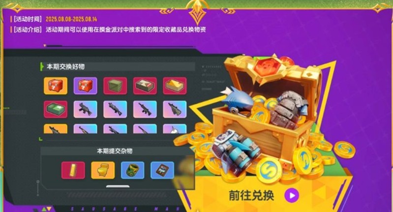 除了通过挑战BOSS获取7级装备外,肠肠们还可以通过兑换活动来获得一些奖励。每周肠肠们可以使用在摸金派对中获得的收藏品和肠宝币,在兑换商店中兑换7级武器(不过需要注意的是,兑换的7级武器是没有词条的)、6级子弹、5级装备、4级装备、钥匙礼包以及史诗枪械物资包等丰富的道具。兑换商店和兑换道具的展示也已经为大家准备好啦,肠肠们可以提前了解一下,看看自己心仪的道具都有哪些。
