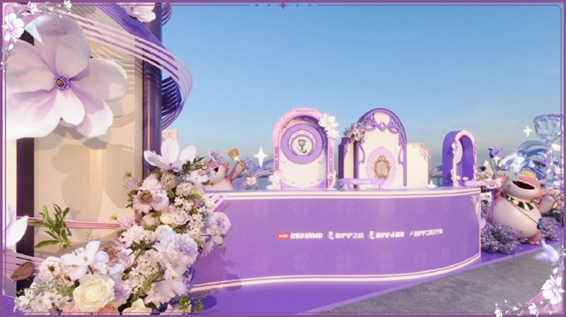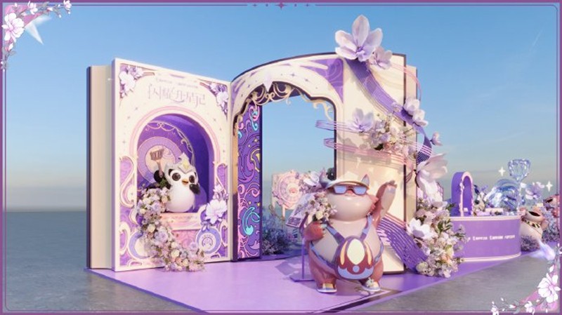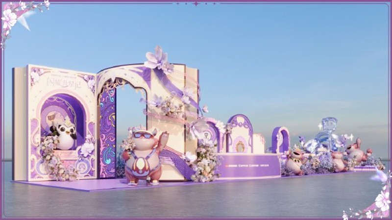 在这次展会上,金铲铲之战的展台被精心设计成一个充满奇幻色彩的冒险乐园。当金宝儿挥动它的魔法小铲子,一条通往奇幻冒险的紫色花路就此开启。展台内,从花海中的幸运转盘到专属打卡水晶长廊,每一步都是限定的心动体验。此外,还有隐藏的打卡点等待玩家们去发现和探索。