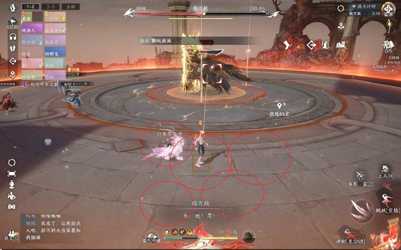 其次是在脚下红圈需要分散的时候,大多数团容易掉人,其实这个脚下红圈只要你人物建模脚下的位置没有和别人重叠你就不会死,不是说一点都不能重叠,所以这个机制的时候大家不要慌,保证自己脚下的位置没有站在别人的红圈里就可以了。
