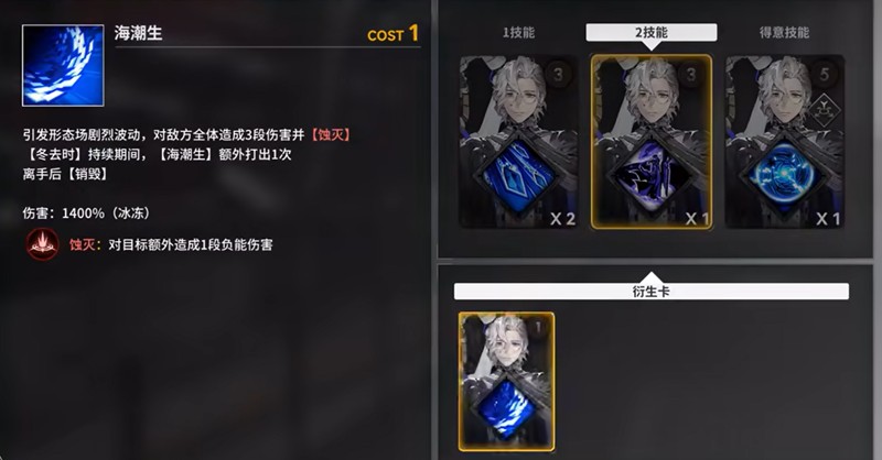 3技能潮海生是伊利亚德的高爆发技能,能引发形态场波动对全体敌人造成3段伤害并附加蚀灭效果。当冬去时技能持续期间使用,还会额外触发离手技能,大幅提升输出效率。