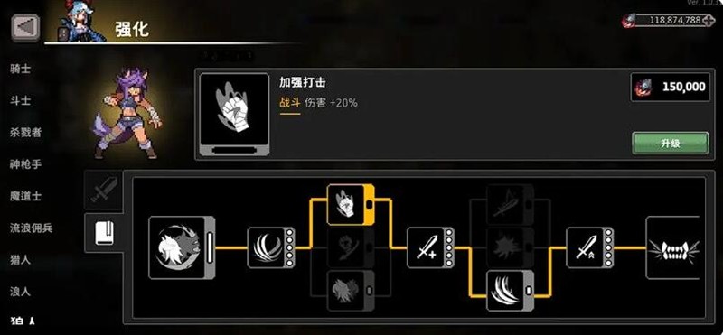 疾风骑士狼人的核心玩法围绕狂化技能展开。这个技能在血量较低时会提供高额伤害加成和回血效果,建议将血量控制在50%以下但高于25%的状态。当血量降至3-4点时使用狂化,可以瞬间回满血量并进入高伤害状态,这是狼人最关键的输出时机。初始武器灼热爪刃攻速快且附带燃烧效果,非常适合新手使用。