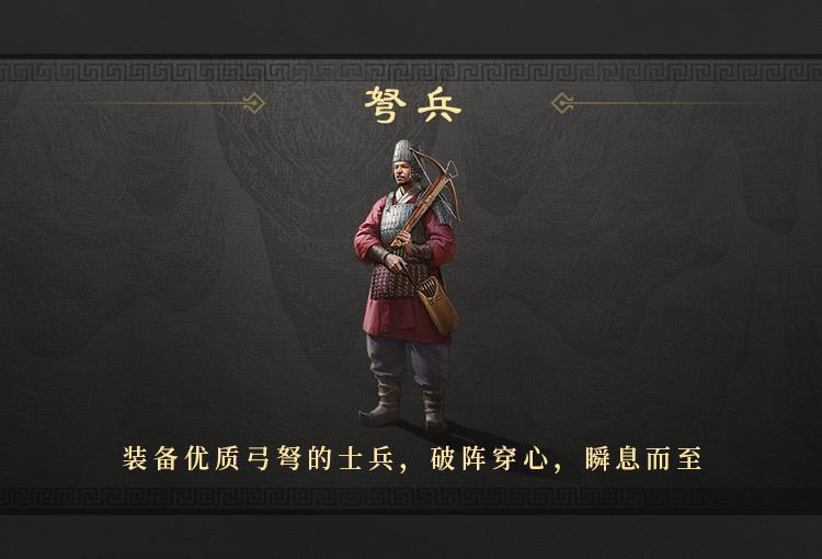 游戏中共有四大基础兵种:盾兵、骑兵、枪兵和弓兵。在S2赛季更新后,每个基础兵种都可以晋升为两个进阶兵种,分别是剑盾兵、重盾兵、轻骑兵、重骑兵、长枪兵、长矛兵、长弓兵和弩兵。