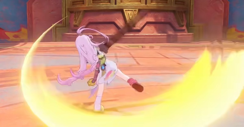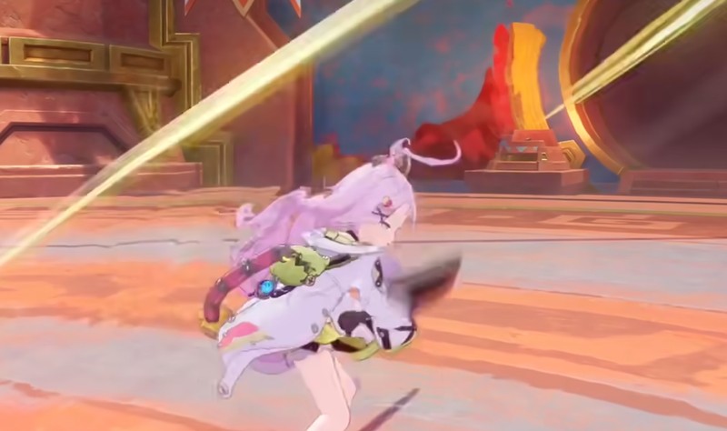 爱诺的普通攻击分为三段连击,最后一击会附带额外的水元素伤害。重击动作非常独特,她会旋转大剑造成范围伤害,最后一击还能击退小型敌人。下落攻击时,爱诺会召唤水元素冲击波,对周围敌人造成范围伤害。