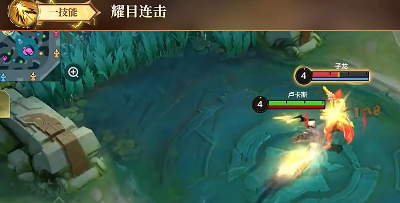 2技能赋予卢卡斯极高的机动性。向指定方向冲刺后,4秒内提升移速和攻速,下次普攻会变为瞬身拳直接闪现到敌人身后。这个技能让卢卡斯能够快速切入战场,在敌人措手不及时完成致命一击。