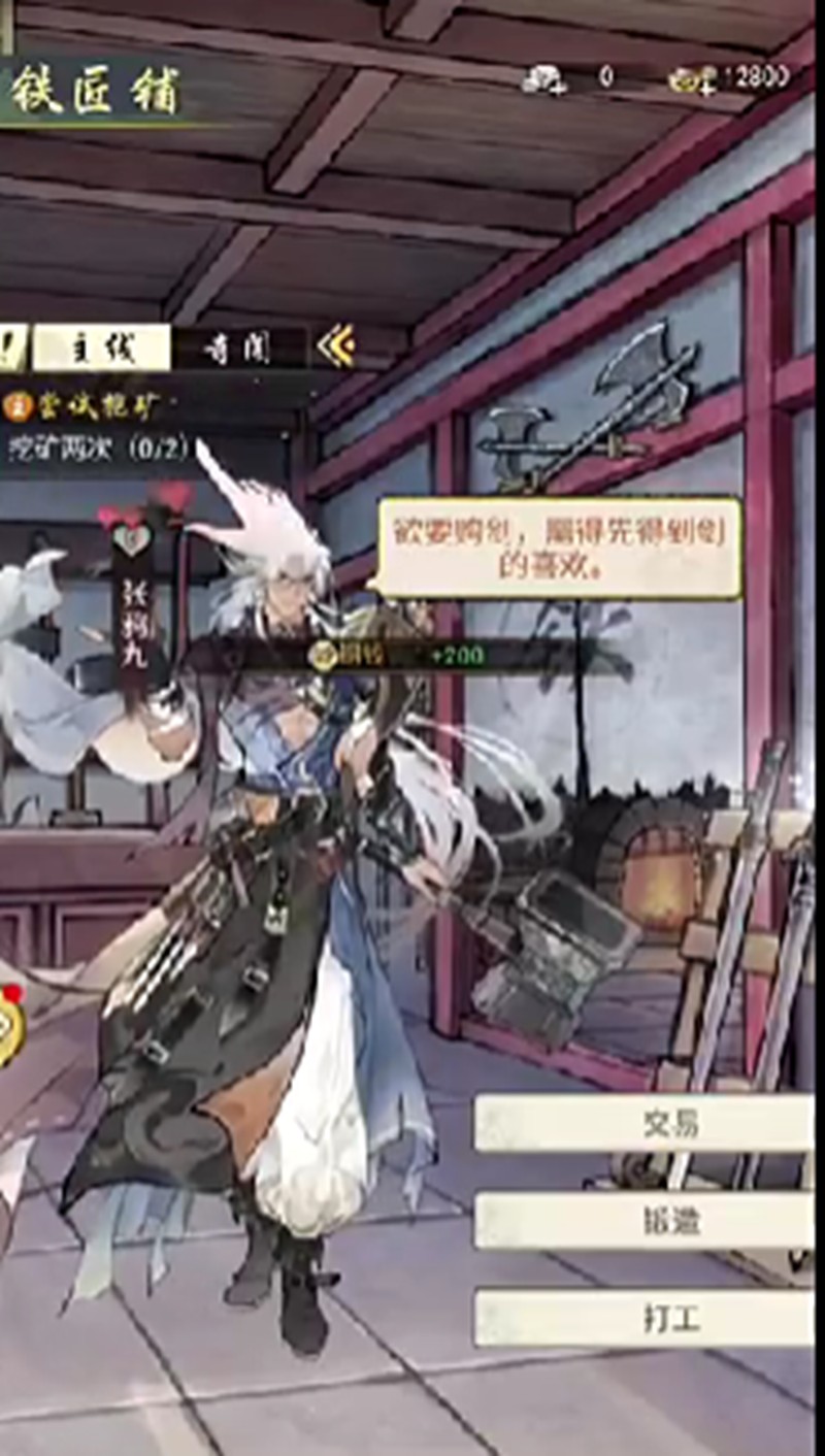 这里住着一位150级的铸剑大师张鸦九,他是弦月山庄的客卿,性格耿直。找到张鸦九后,他会要求玩家锻造出一件中品兵器,完成这个任务就能正式开启锻造功能。