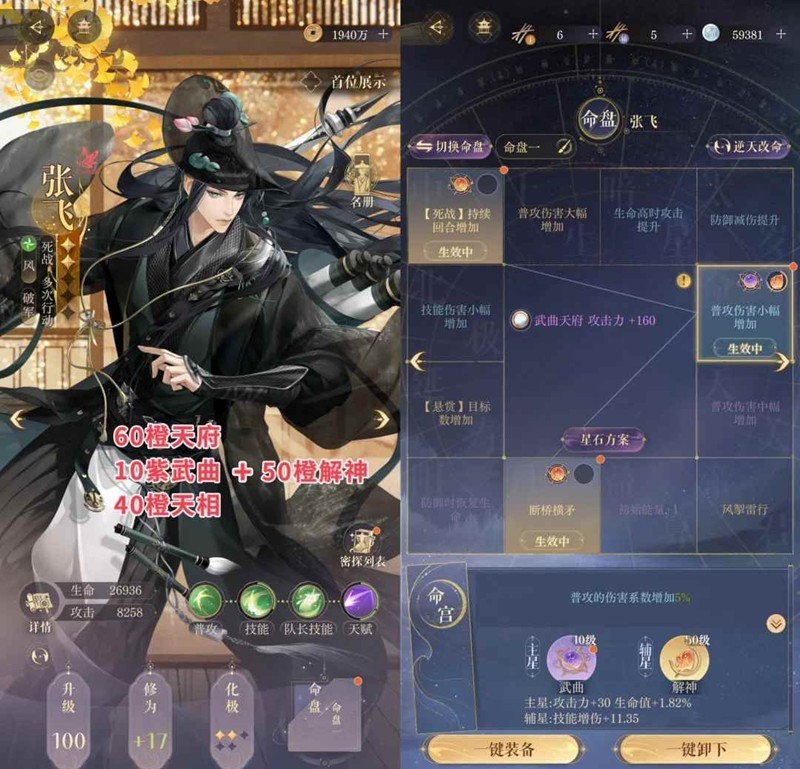 1. 这关需要控血量,不是密探攻击越高越好,不能提前把boss打死,17-18回合需要保住张飞和史子眇,所以张飞和史子眇站不住尽量装一点生命星石