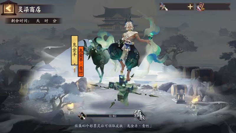 累计获得40个「彩墨灵」后,大人们即可兑换获取SSR鬼金羊的染色皮肤「鬼金羊·青竹」。这款皮肤以其独特的青色设计和精美的细节,展现了鬼金羊的神秘与优雅。大人们千万不要错过这次免费获取稀有皮肤的机会!
