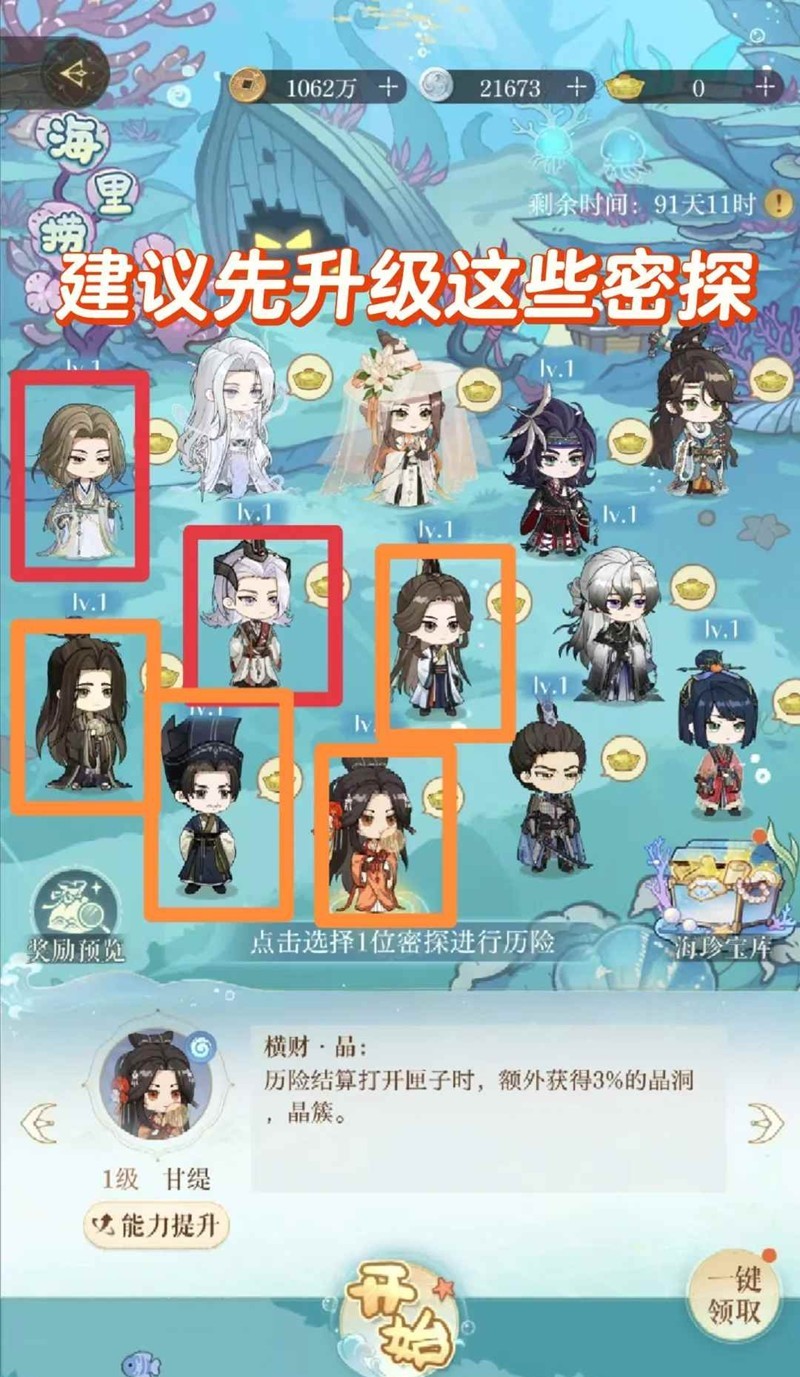 建议先拉到10级的密探: