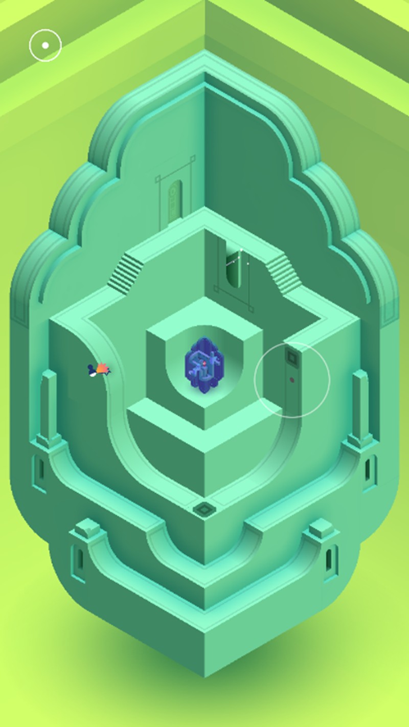 这层只有妈妈角色,直接点击门让妈妈移动过去。虽然视角看起来无法通行,但只要调整视角就能发现左右两侧其实是相连的。这是整个圣石阵关卡中最简单的一层。