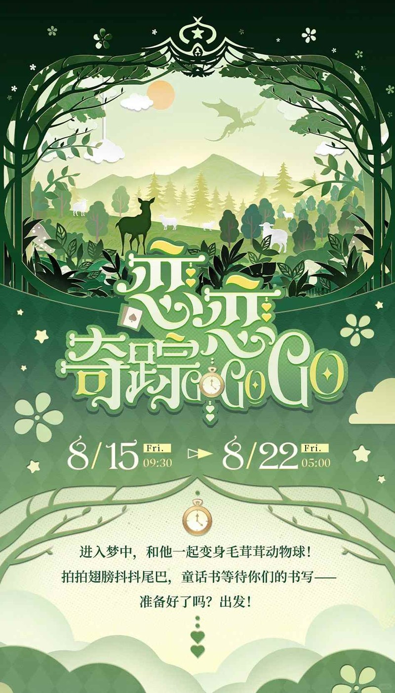 8月15日9:30 - 8月22日05:00,通过[主界面]右下角-进入[恋恋奇踪·风恋龙野],和司岚一起探索梦中世界。