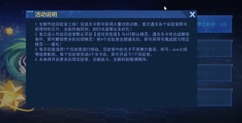 完成所有四个实验室的挑战后,玩家可以获得限定精灵星礼。小伙伴们需要注意的是,实验室关卡不受赛尔套装、称号等效果影响。每完成4个关卡就能解锁下一个实验室,后续还会有更多实验室和新的战斗机制开放。成功通关可以获得功勋点数奖励,首次通关每个类型的实验室还能获得额外奖励。