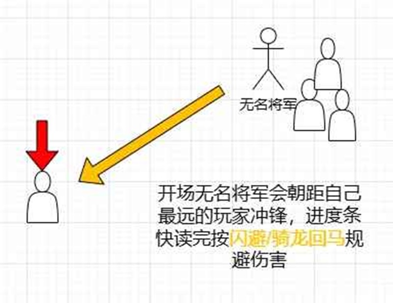 1、点名最远的冲锋+横扫,要么轮流去,要么找会玩的,进度条结束就闪/骑龙回马,中招会有流血debuff