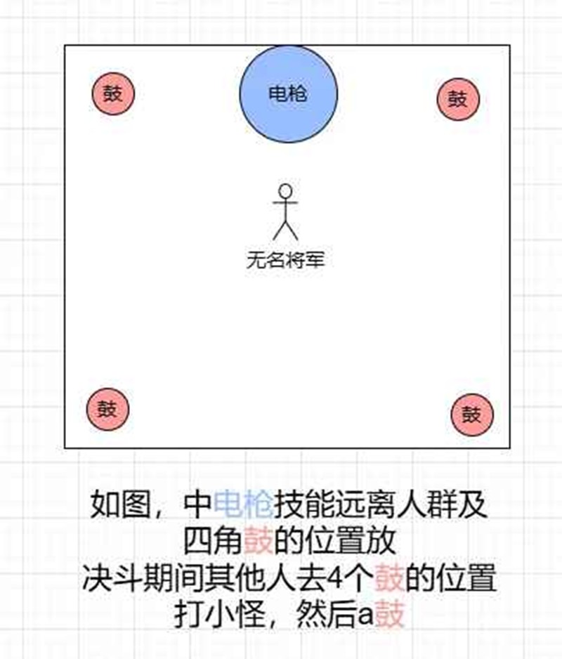 3、点名玩家放电枪,被点名的远离人群去场地边缘,同时不要站在鼓那里