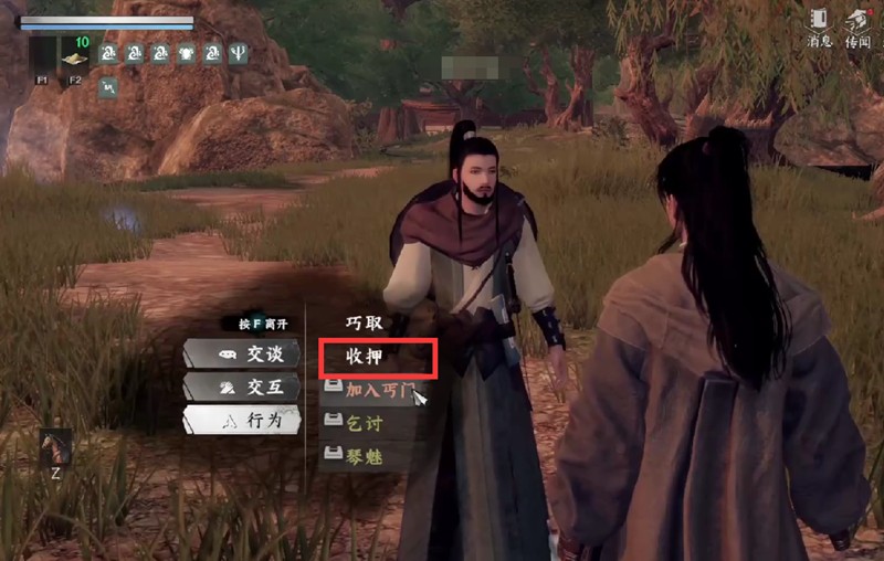 获得岛契后,玩家可以在监牢岛担任典狱长。这时可以对地图上的蓝点NPC进行收押,并将他们押送到监牢岛关押。与犯人互动时,玩家可以选择恐吓、勒索或说服等方式。成功互动后有机会获得NPC的武学物品和特殊道具,这些奖励能帮助玩家提升战斗实力和学习新武学。