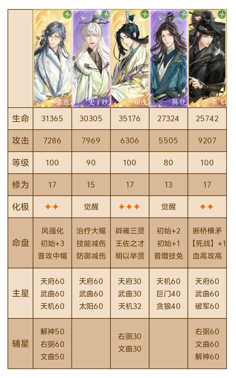 没有带抗性星石 想全力输出所以把荀彧拉到了100 如果输出够站不住可以考虑抗性星石 荀彧攻击力越高盾越厚