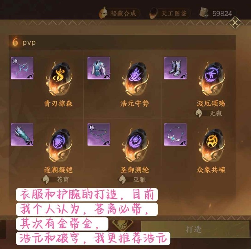 3.打造 : 护腕和衣服位置,优先带苍离,其余有金带金。