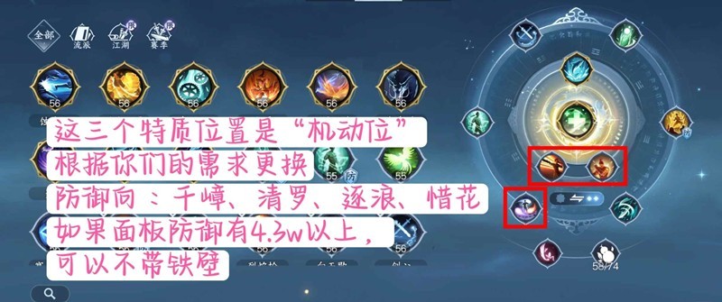 4.特质 : 在保证面板防御能有4w+的情况下,“机动位”的三个小特质,可以根据自己的需求去选择要治疗向或是坦度向。