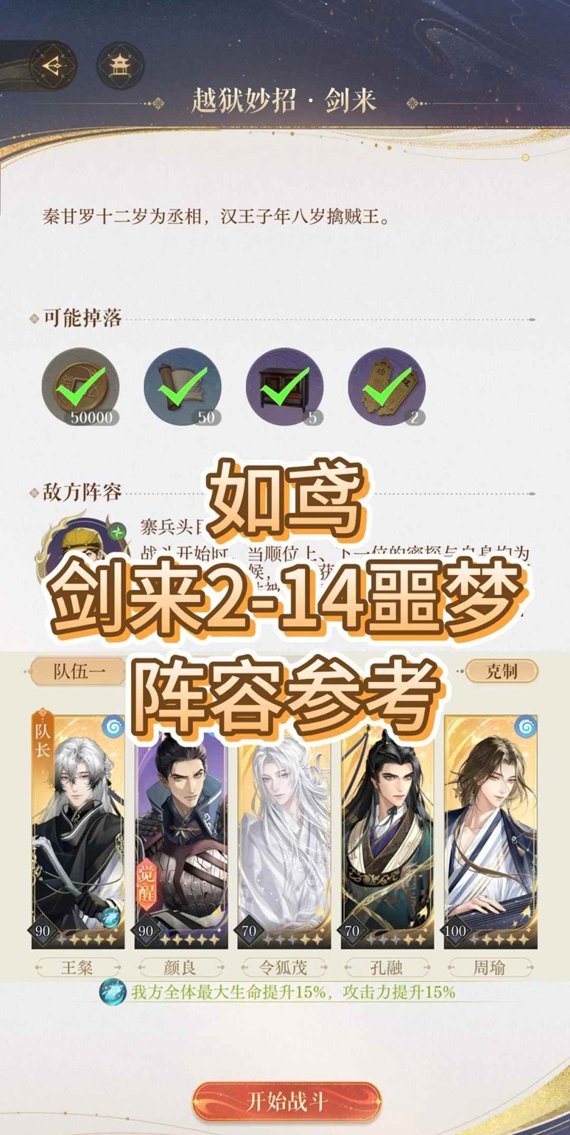 以上就是如鸢剑剑剑来噩梦模式攻略,第二章2-14噩梦阵容分享的全部内容了,更多游戏资讯,攻略内容敬请关注切游网,您的支持是我们努力的动力!