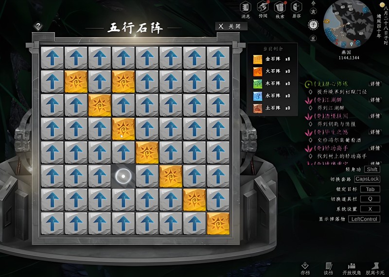 五行石阵在下一站江湖2中分布广泛,升仙湖地宫入口、飞练瀑布左侧山崖、四圣峰特定位置以及一气屿将军墓地都能见到。这个机关由不同颜色的石块组成,破解时需要将相同颜色的石块归位并消除。