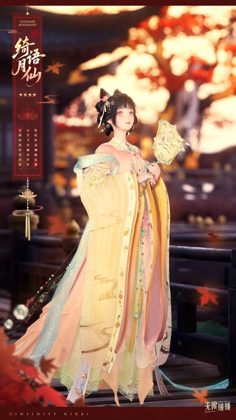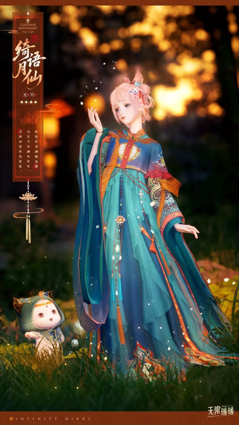 「绮语月仙」进化后为套装「绮语月仙·夜明」。套装焕新完成后可获得「绮语月仙·陆离」。