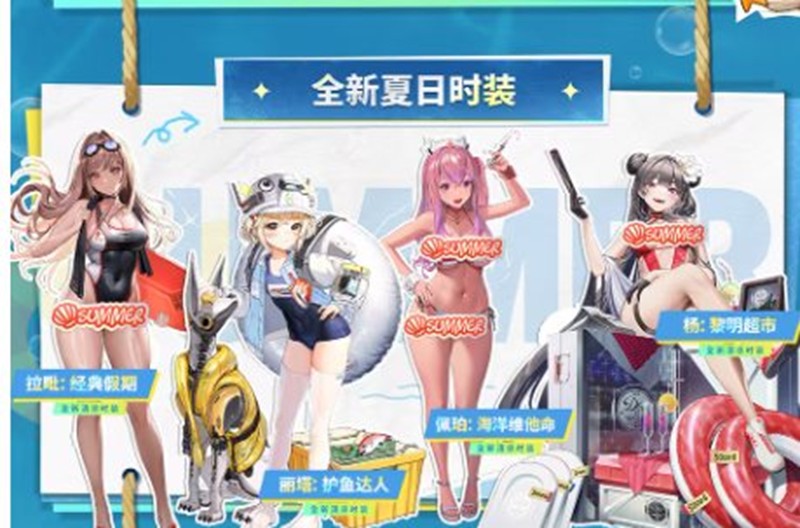 除了夏日形态的妮姬,游戏中还推出了全新的夏日时装,包括: