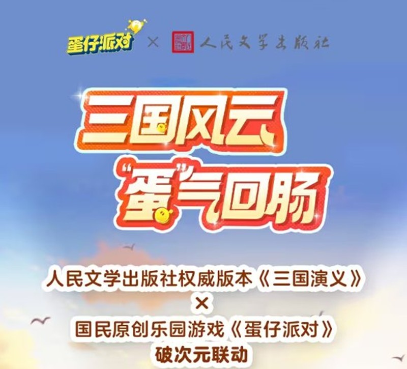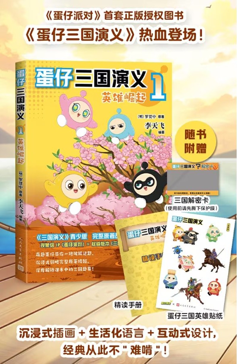 先前切游网报道过,国民原创乐园游戏《蛋仔派对》与人民文学出版社权威版本《三国演义》进行破壁联动,而在今日官方正式官宣,将推出首套正版授权图书《蛋仔三国演义》。这一创新合作旨在通过游戏与文学的结合,为读者带来全新的阅读体验。