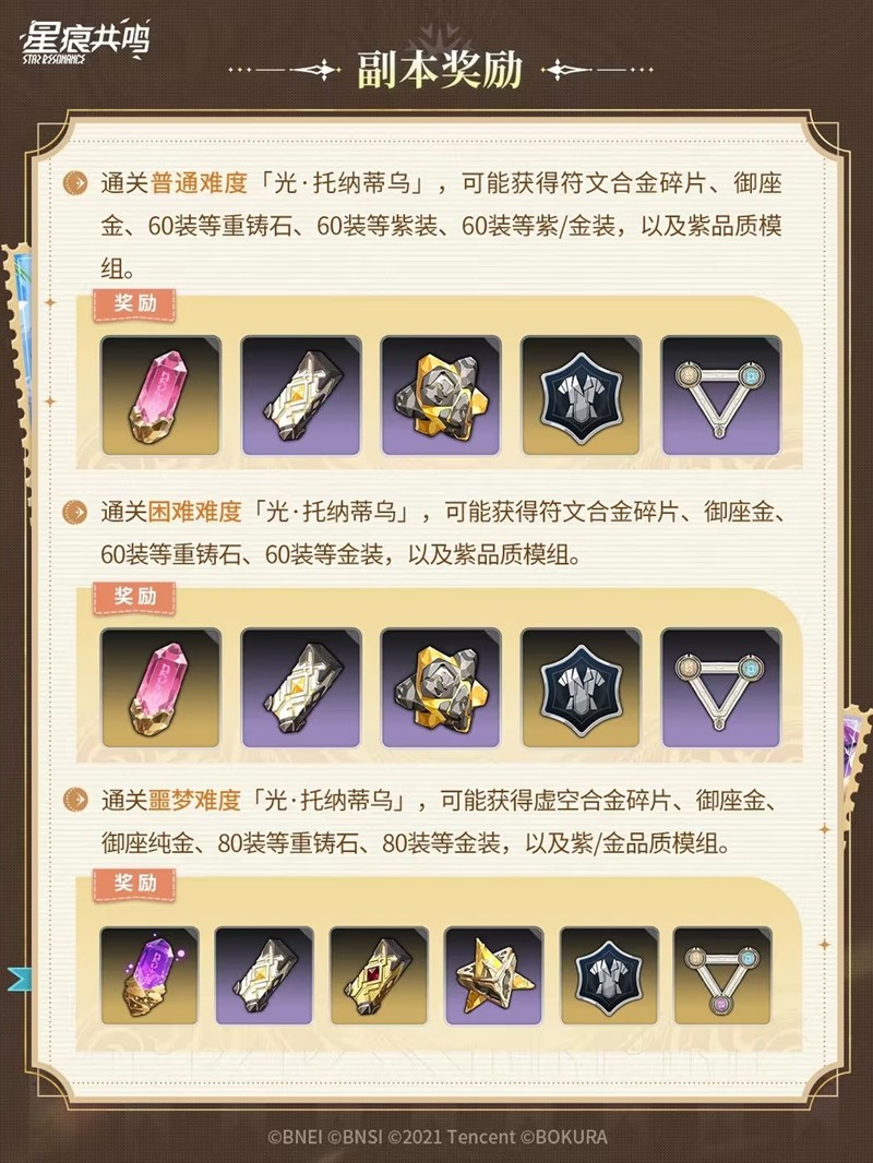 普通难度:可能获得符文合金碎片、御座金、60装等重铸石、60装等紫装、60装等紫/金装,以及紫品质模组。