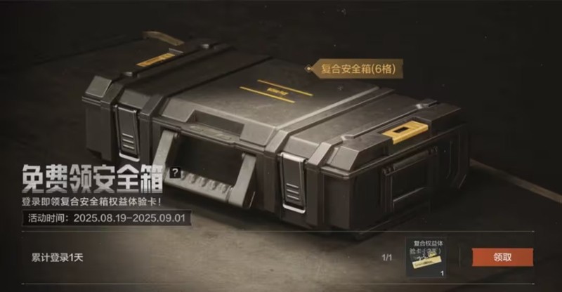 点击【活动】—【周年福利第二弹】—【免费领安全箱】,在活动页面点击即可领取【复合安全箱权益体验卡(3天)】。领取体验卡后需前往【体验卡道具】页面激活使用。