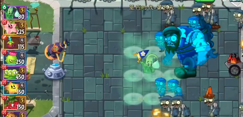 5阶的寒冰水滴技能使水滴附带寒冰效果,不仅提升自身20%伤害,还能减缓进入范围内的僵尸移动速度。