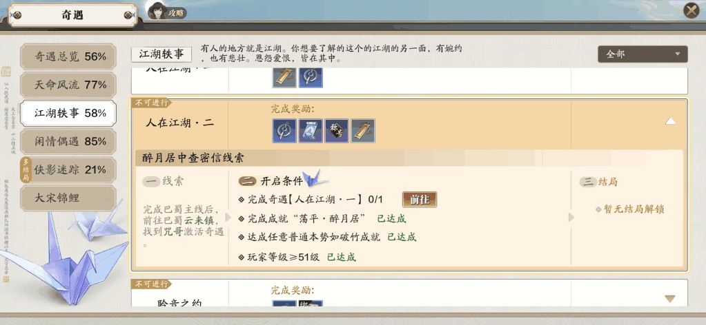 首先是奇遇任务,这绝对是游戏中获取绑点的好方法。游戏中的部分奇遇任务完成后会奖励绑点,这些任务通常都有明确的触发条件,小伙伴们可以前去专门做一下。