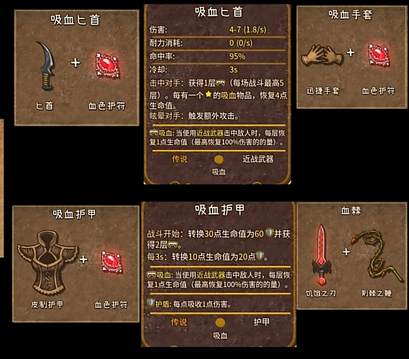 流派构建是《背包乱斗》中提升战斗效率的关键。游戏中的合成流派大致可分为爆发型、控制型与生存型三类。黑暗套流派以其高爆发与减益效果著称,核心装备包括黑暗剑、腐败护甲与黑暗心之容器。吸血套流派适合持久战,标志性装备有吸血匕首与吸血护甲。自然毒宠流派围绕“黏黏”宠物展开合成,适合巡林者使用。神圣魔法流派专注于光属性组合,克制黑暗系敌人。巨龙召唤流派则是后期成型的特殊玩法,需要较长的发育时间。