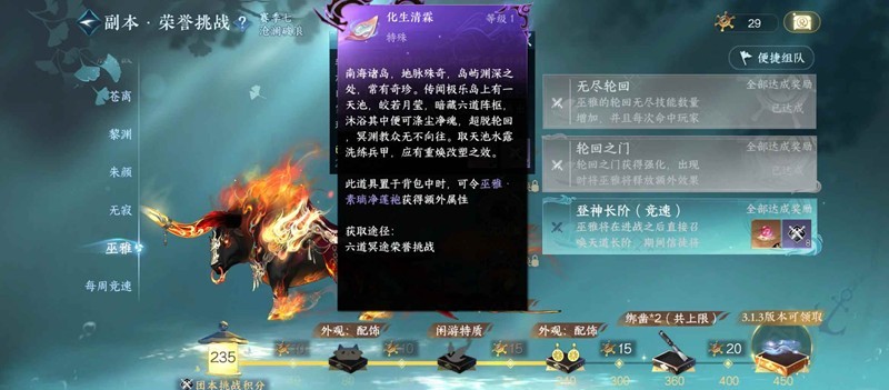 3. 荣誉挑战的三个材料“化生清霖”拿到放背包即可