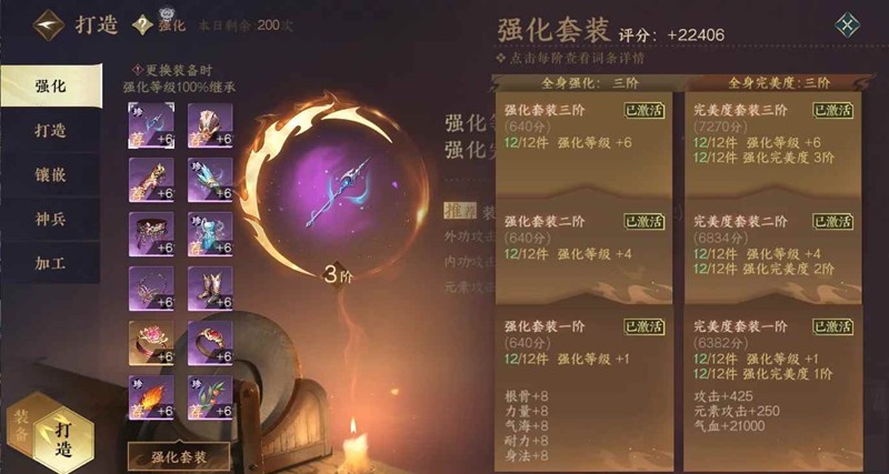 强化:一定要强化到3阶完美,然后从忽视,元素攻,命中,会心里面慢慢强化就好。