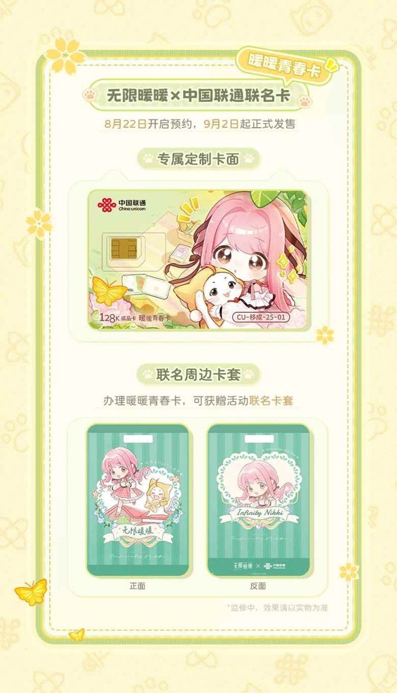 《无限暖暖》×中国联通 联名「暖暖青春卡」及「暖暖青春权益包」现已开启预约,将于9月2日正式上线!