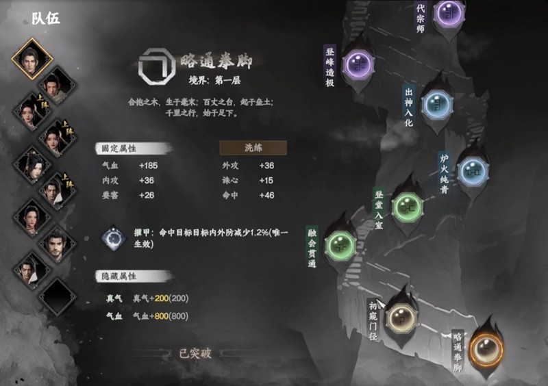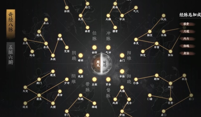 经脉系统首次开启后,系统会引导玩家刺激手太阴肺经的中府穴,消耗100蒸汽后该经脉将被永久解锁。每条正经包含9到12个穴位,全部点亮后可获得永久属性加成,例如12%的气血提升和8%的外功属性增强。在下一站江湖2中,提升经脉需要消耗真气和修为,修为可以通过完成任务、击败野怪或读书获得,而真气则主要通过打坐(默认按键V)或使用真气丹获取,每天最多可使用20颗真气丹。