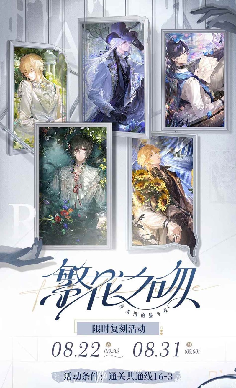 8月22日09:30-8月31日05:00,[画廊]开启「繁花之吻」卡池复刻。